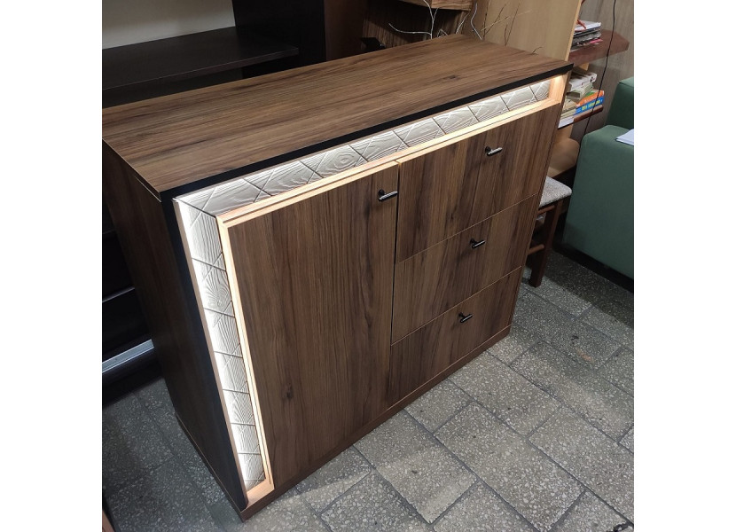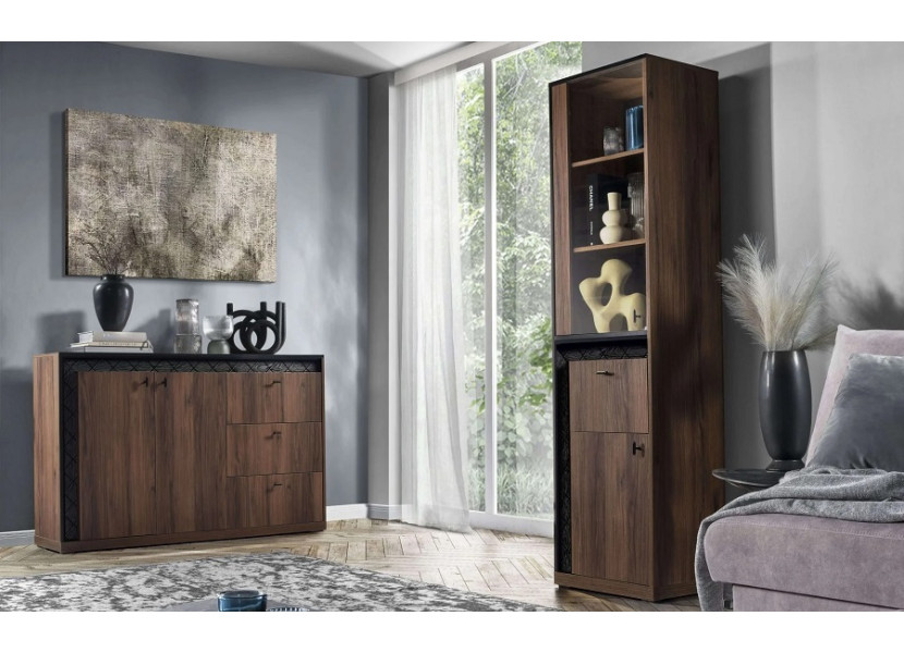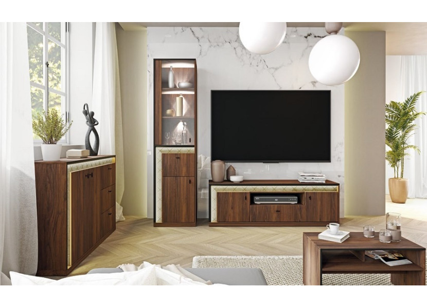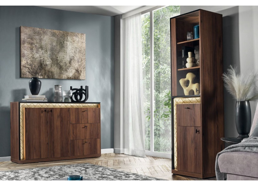 Kolekcia SENESI má teplú orechovú farbu v talianskom štýle nábytku. Dekoračné lišty sú vyrobené z borovicového dreva, moreného do čiernej farby, ktorú môžete krásne podsvietiť LED osvetlen..