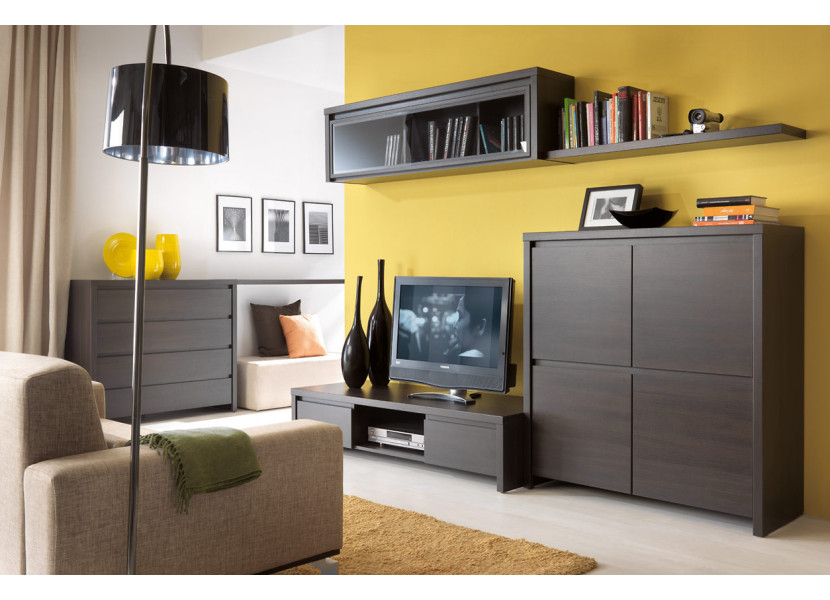 Sektorová obývacia stena KASPIAN umožňuje ľubovoľné zariadenie interiéru. Elegantná kolekcia nábytku vo farebnom prevedení wenge je ideálnym riešením pre miestnosti ako sú spálňa, obývacia stena, preds..