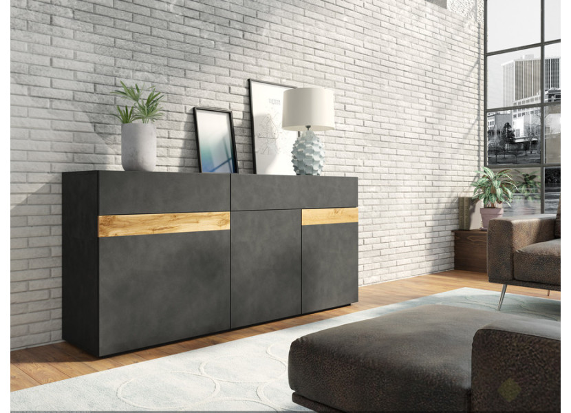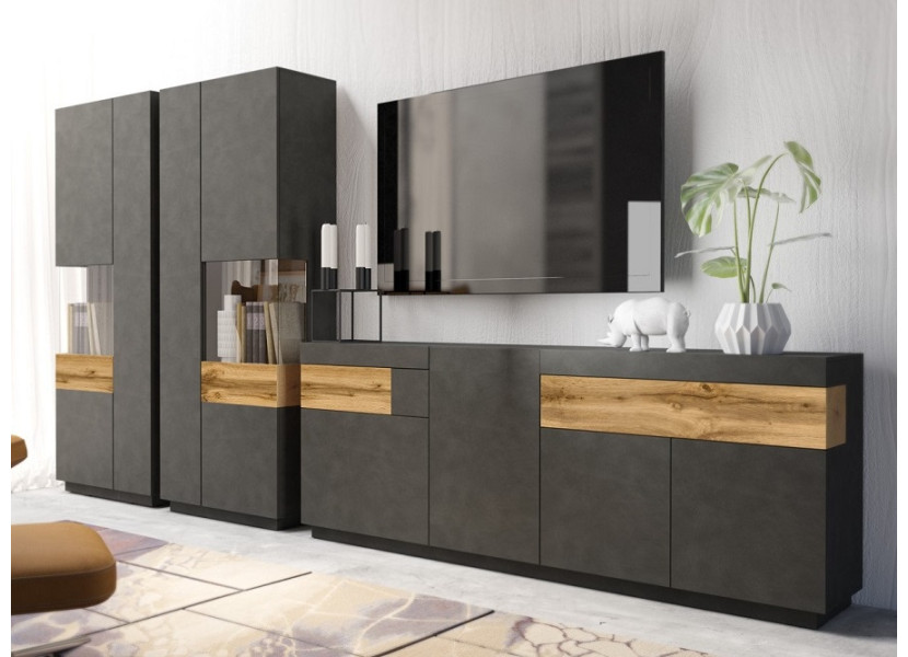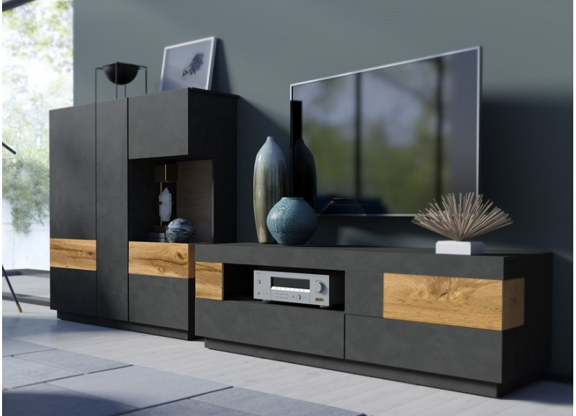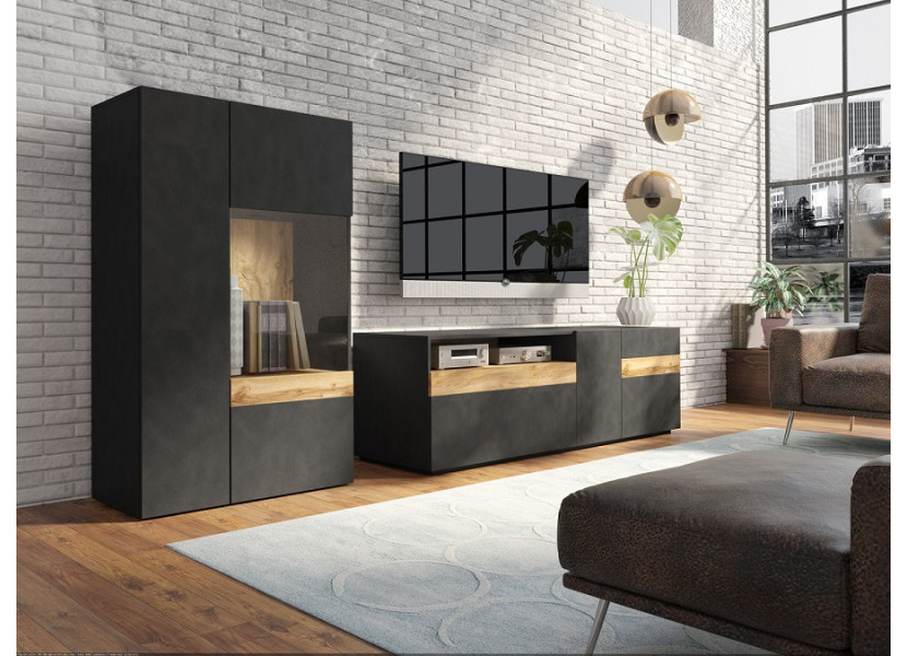 Nábytok STACEY matera je vhodný do moderných obývacích izieb. Farebná kombinácie farby matera a dub wotan vytvorí v miestnosti príjemnú atmosféru. Vyberte si zo sektorových skriniek a zariaďte si obýva..