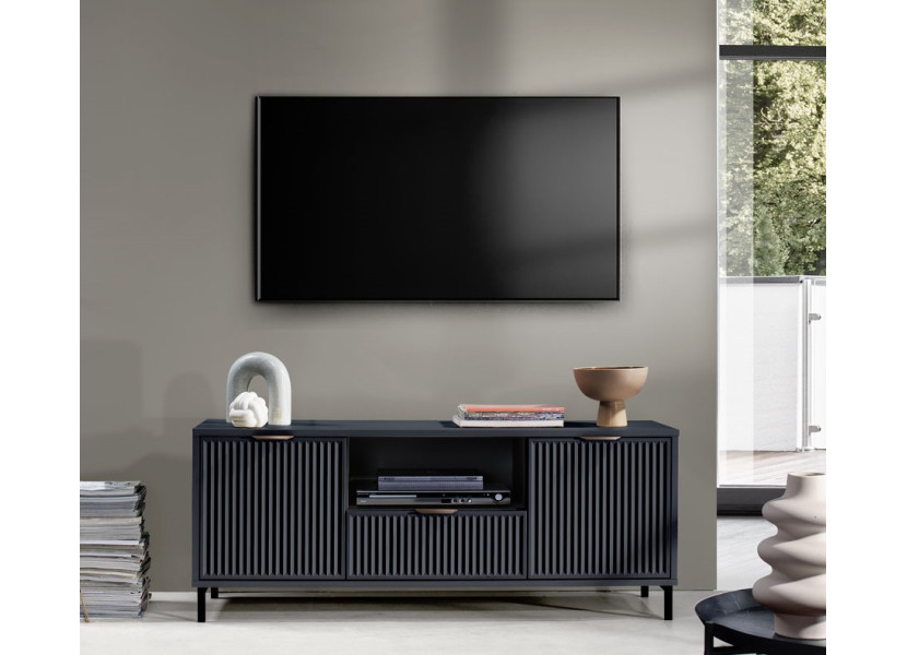 Nábytok LINKaSTYLES vo farbe indigo je vhodný pre ľudí, ktorí radi kombinujú farby a štýly. Nábytok je zdobený vzorom na dvierkach, v podobe frézovaných drážok. Kovové nožičky majú čiernu farbu,..