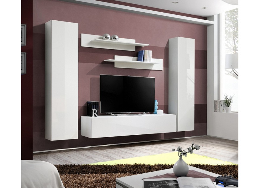 Obývacia stena FLY A1 sa skladá z niekoľkých častí, z 2 ks vysokých skriniek, 1 ks TV stolíka a 2ks závesných poličiek. Vhodná je najmä do moderne zariadených priestorov. Dvierka z vysokého lesku sa otvá..