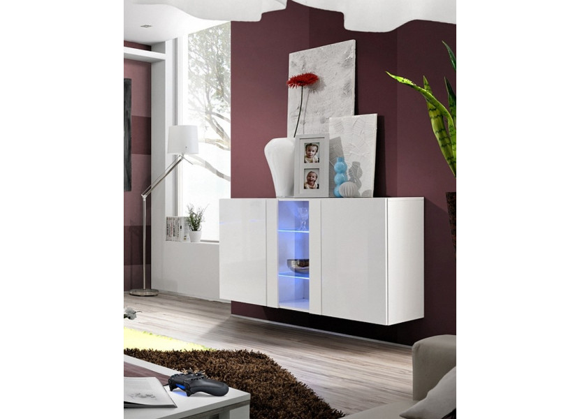 Komoda FLY je trojdielna. Na ľavej aj pravej strane je za dvierkami jedna polica. Strednú časť tvoria sklenené dvierka so sklenenou policou, ktorú môžete osvetliť LEDkou. Dvierka vo vysokom lesku sa otvárajú systémom PUSH to OPEN.   Para..