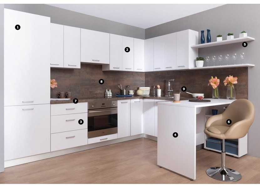 sektorová kuchynská zostava REA ALFA, kuchyňa REA ALFAMateriál