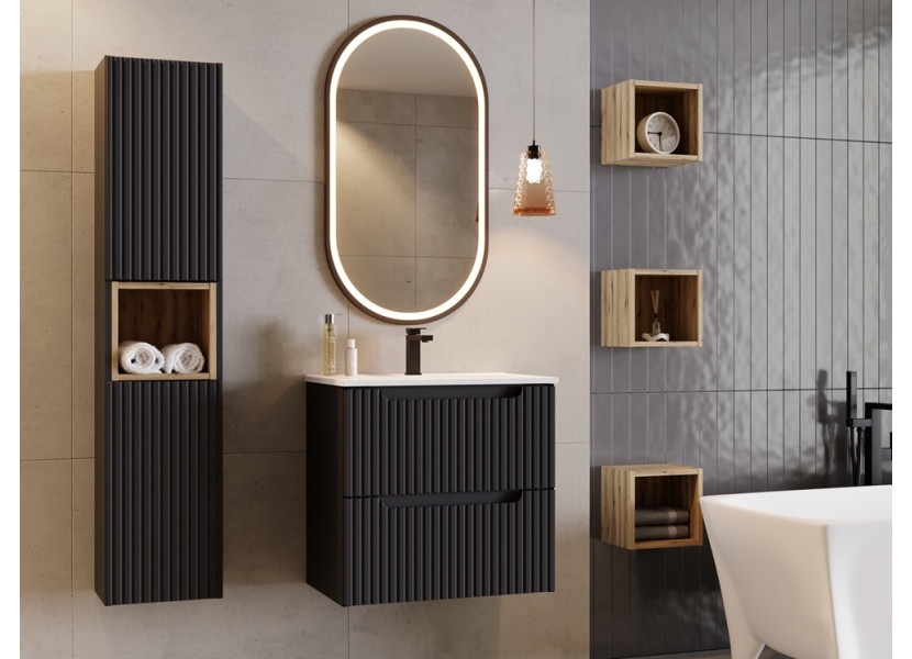 Vysoká policová skrinka do kúpeľne NOVA Black 80-03-2D predstavuje praktické a moderné riešenie pre všetkých, ktorí si potrpia na kvalitný a funkčný kúpeľňový nábytok. Kúpeľňová po..