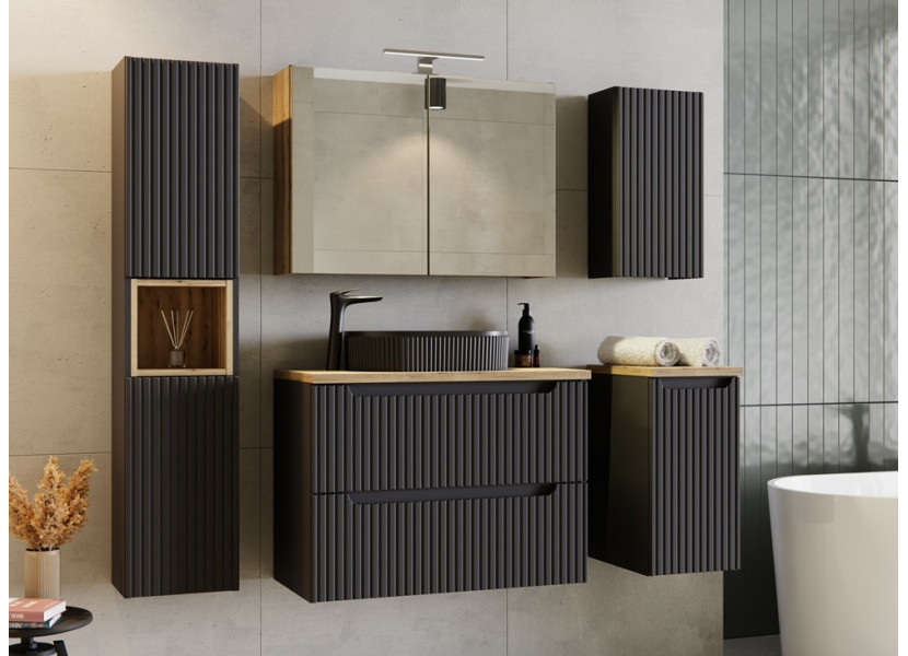 Závesná skrinka do kúpeľne NOVA Black 83-20-1D predstavuje praktické a moderné riešenie pre všetkých, ktorí si potrpia na kvalitný a funkčný kúpeľňový nábytok. Úzka skrinka..