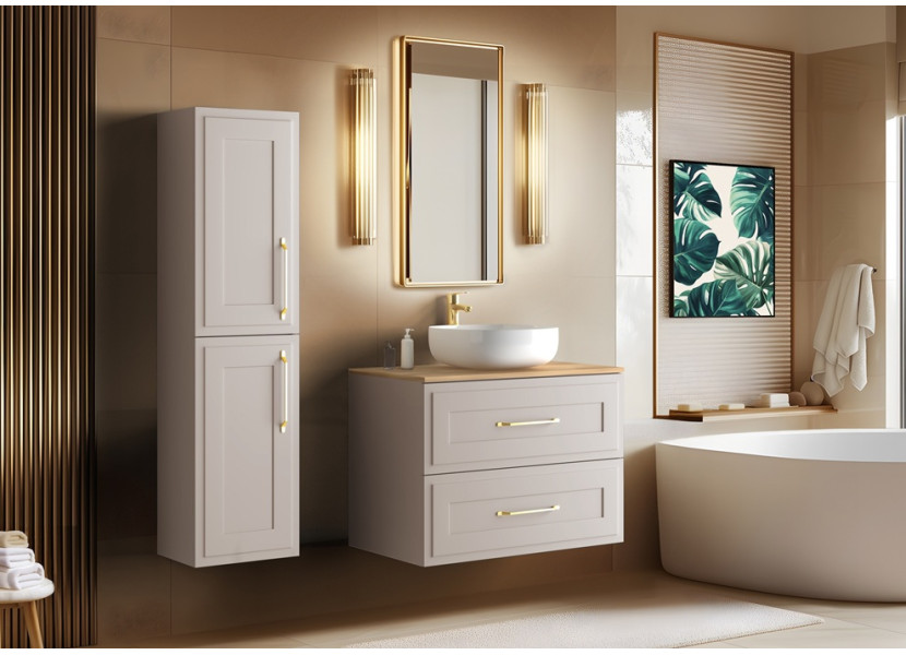 Vysoká úzka policová skrinka do kúpeľne CLASSIC kašmír K35 je praktickým doplnkom pre každý kúpeľňový priestor, ktorý hľadá spojenie funkčnosti a tradičného dizajnu. Béžová skri..